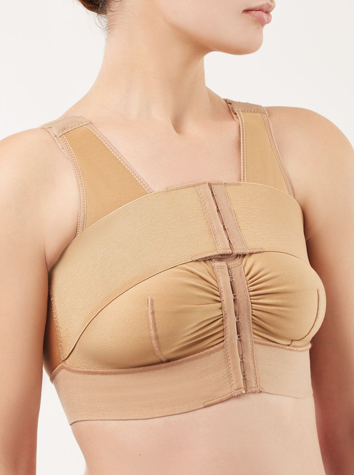 После увеличения груди желательно ношение компрессионного бюстгальтера с целью скорейшего восстановления, заживления, предупреждения отеков и гематом, сглаживание болезненных послеоперационных ощущений.